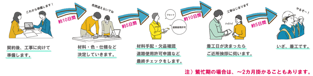 ①ご契約後は、クーリングオフ期間8日間を待って段取りスタートとなります。